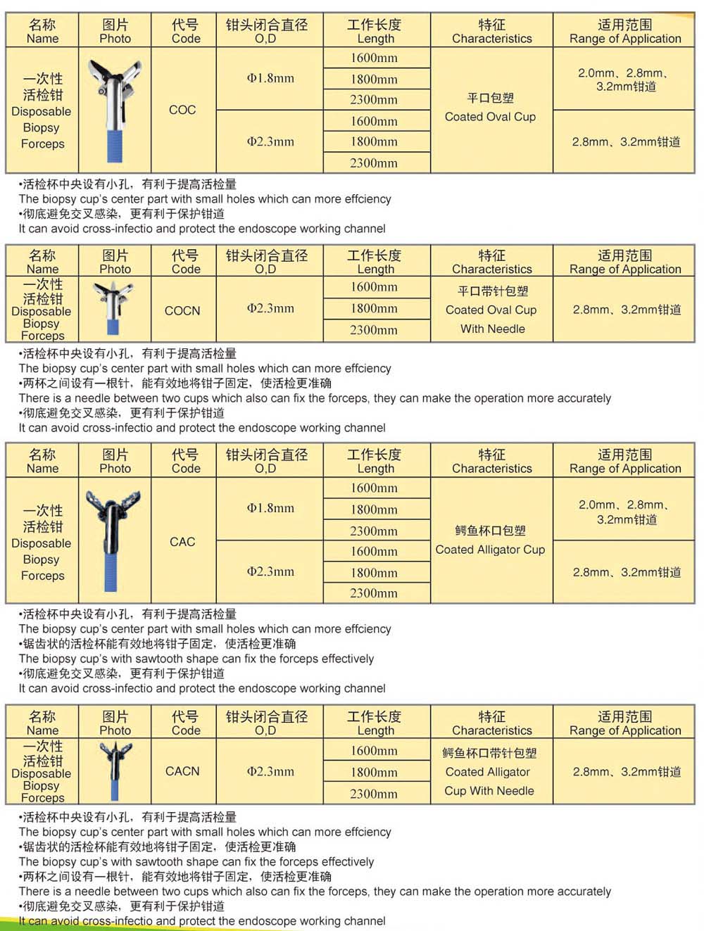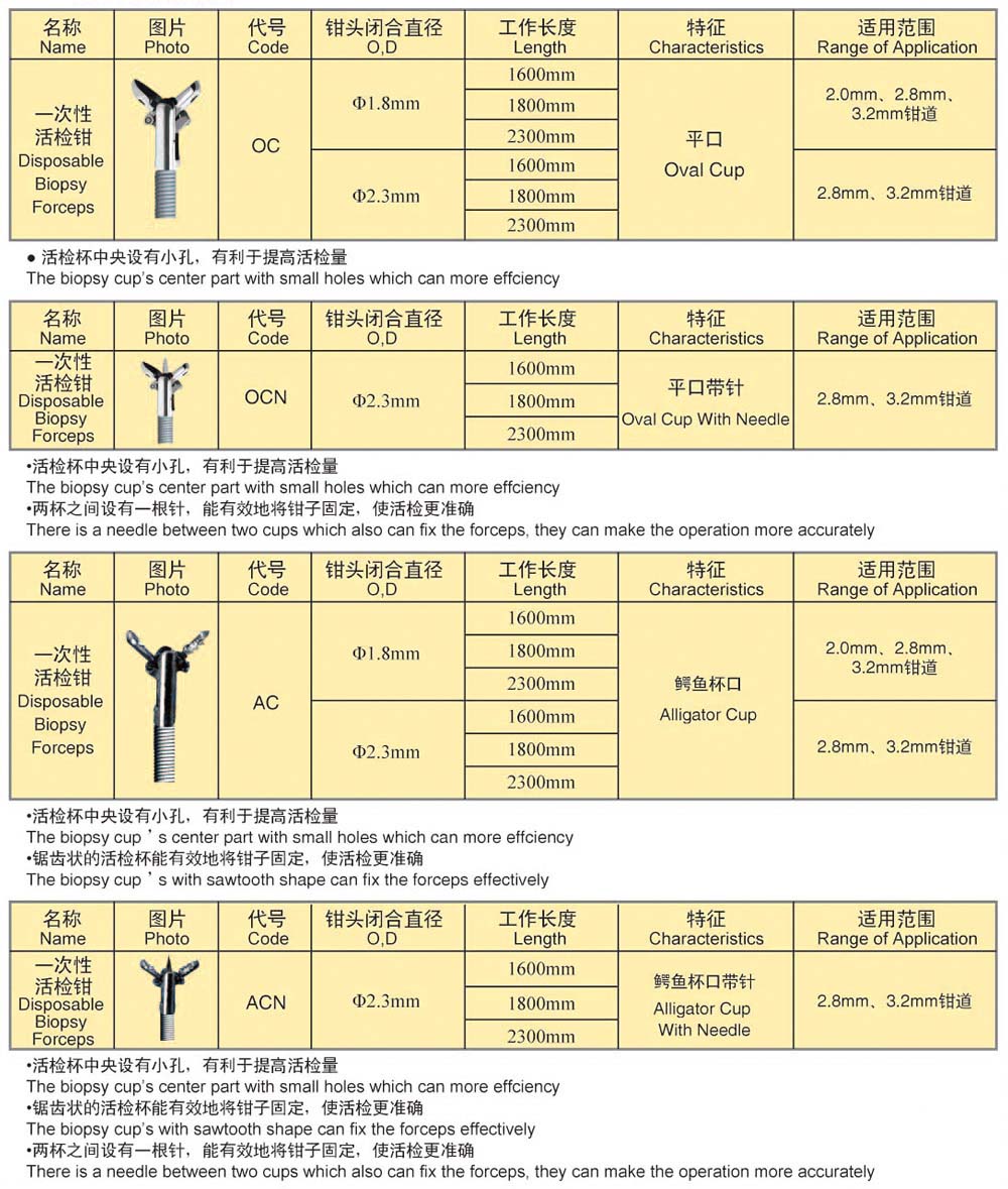 該產(chǎn)品與內(nèi)窺鏡配合使用,臨床適用于組織標(biāo)本的鉗取