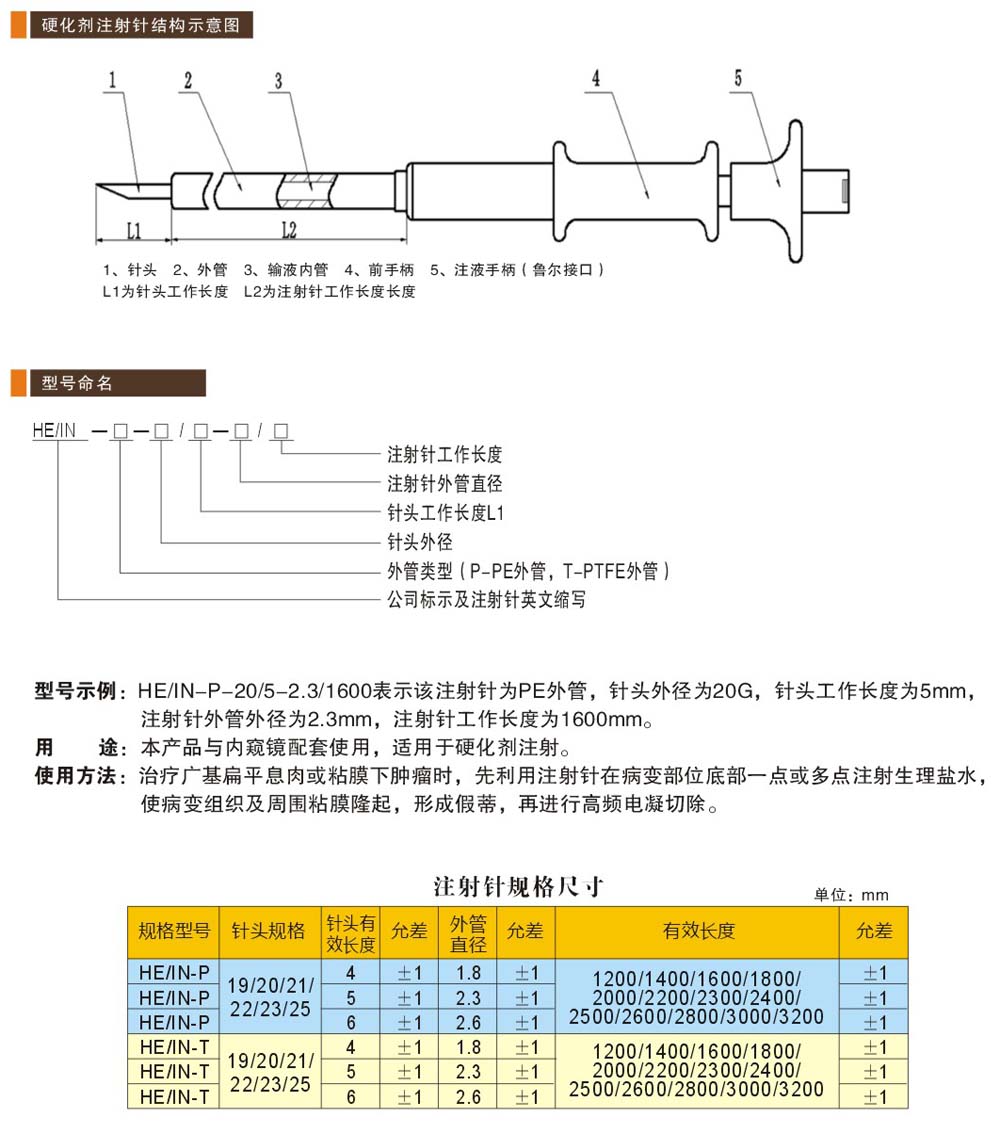 與內(nèi)窺鏡配合使用,用于硬化劑注射。